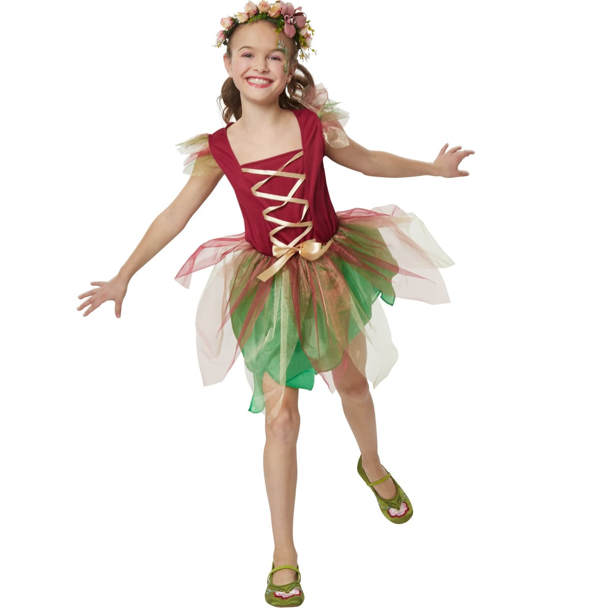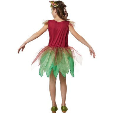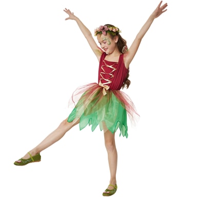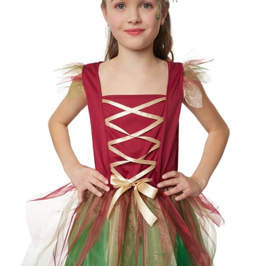 Pigekostumet, Skovelverpige, består af en kjole med korte ærmer af tyl og en påsyet snøre. Den fine nederdel er omgivet af to lag tyl, materiale: 100 % polyester.