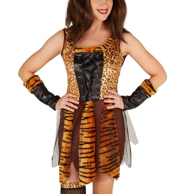 I det flotte kostume som jægerkvinde fra stenalderen er du perfekt udstyret til jagt - om det er efter mad eller en flot, vild hulemand. Sæt gang i urtiden igen, så bliver der garanteret sendt frække blikke efter denne forklædning. Ligegyldigt, om du følger jagtinstinktet til fastelavn eller til en temafest - udklædt som stenalderkvinde vil du tage enhver fest med storm. Hos os kan du finde mange andre stenalderkostumer, som kan bruges til at forvandle sig til vilde stenaldermennesker sammen med vennerne.