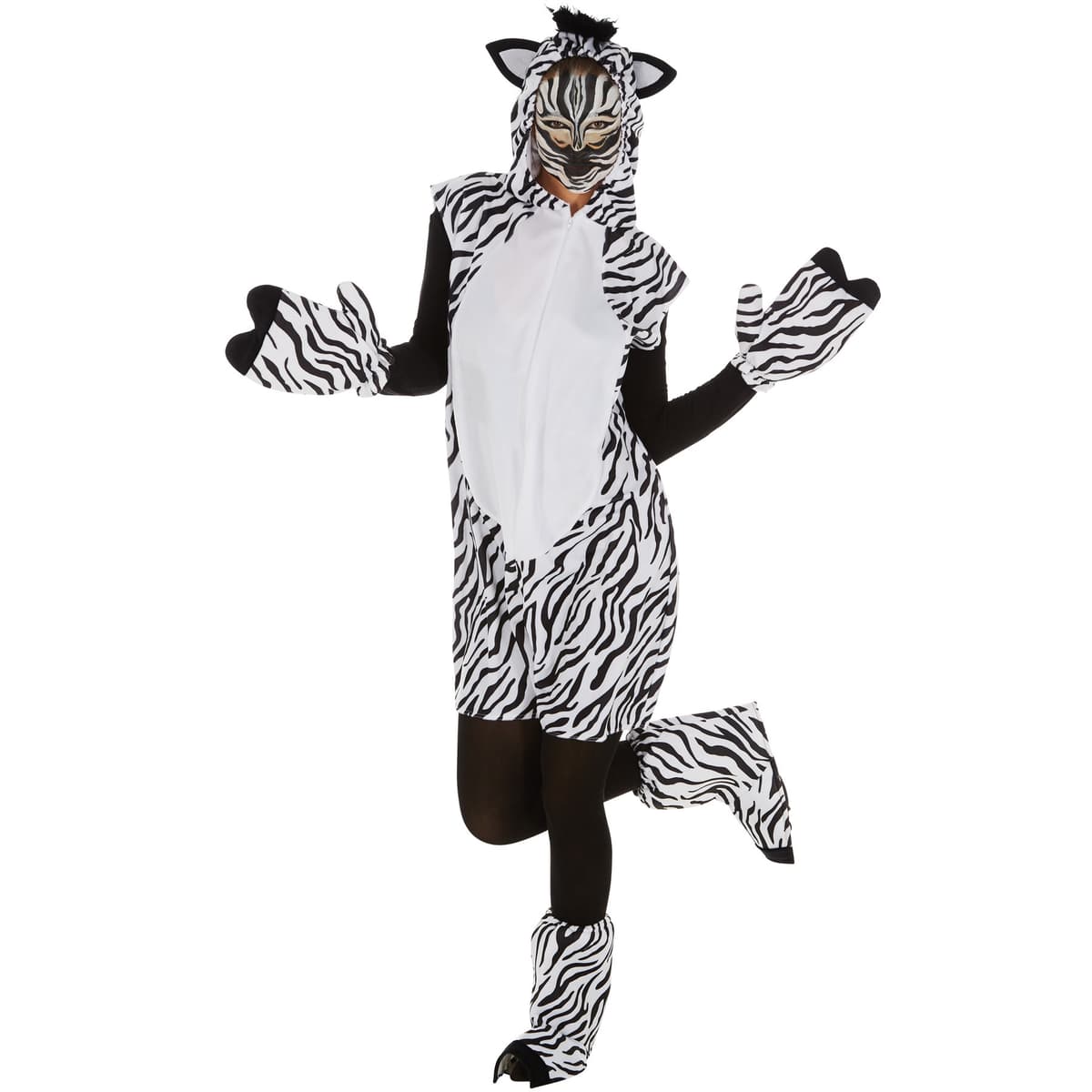 Glæd dig over dette pragtfulde zebrakostume til hende og ham! Det ærmeløse sort-hvide kostume er fremstillet af blød, imiteret pels og har en lynlås foran. Inkl. Handsker, benvarmere og helkropsdragt.Læs mere om produktet