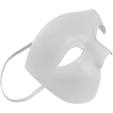 En speciel aura omgiver den venetianske maske Fantom. Med sin hemmelighedsfulde, mystiske og elegante fremtoning tiltrækker den sig de tilstedeværendes blikke. Det ensfarvede, strålende tilbehør dækker den højre halvdel af ansigtet og holder munden og det venstre øje frit. Takket være det elastiske gummibånd kan halvmasken nemt fastgøres på ethvert hoved, materiale: Kunststof, polyester.