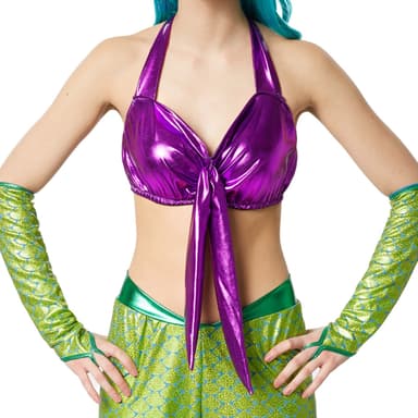 Designet fuldendes af legende detaljer og fine applikationer, der perfekt understreger kostumets mystiske tema. Uanset om du vil optræde som en mystisk havfrue, fortryllende nixe eller elegant vandnymfe – med dette outfit er der ingen grænser for din fantasi.