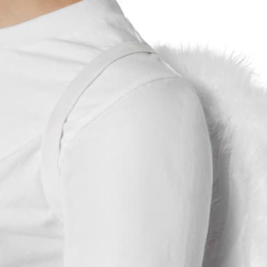 De vidunderlige, hvide englevinger gør dit himmelske outfit perfekt. De store, elegante svingfjer ligger tæt op ad hinanden på et stabilt papunderlag. Yderkanten foroven er indvendig pyntet med bløde dun. De brede vingeslag bæres med to brede, fleksible gummibånd som en rygsæk over skulderen, og takket være bøjelig ståltråd kan de formes efter ønske. Det specielle design af disse vidunderlige englevinger giver dette tilbehør dets elegante look, hvorved det kan kombineres perfekt med mange outfit, materiale: 100 % gåsefjer, pap, gummibånd, ståltråd.