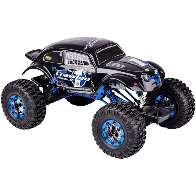 Klatrprofessionelle til hårdt terræn! CARSON X-Crawlee XL Beetle har et ekstremt terrængående Trial-chassis til der er konstrueret til omfattende klatreture. Takket være radikalt korslagte aksler, stive gennemdrev og boltede Beadlock-dæk klarer Crawleren næsten enhver forhindring. Talrige blåeloxerede aluminiumdele, som de justerbare olietryksstøddæmpere reducerer vægten og sørger sammen med det robuste polykarbonatkarosseri for et cool look. Den køreklare og færdigsamlede X-Crawlee XL Beetle er klar direkte fra kassen, da 2,4 GHz-sender, senderbatterier, kørselsbatteri og en oplader er en del af standardudstyret. OBS! Denne produktbeskrivelse er endnu ikke blevet oversat til dansk af vores oversættere. Derfor er teksten maskineoversat fra den tyske originaltekst.