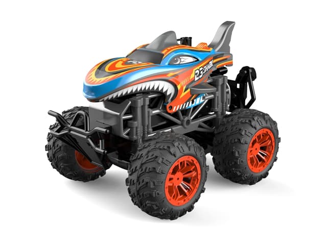 Shark er en helt rå stuntbil som kan gjøre mange triks samtidig som den spiller musikk med blinkende lys og røyk som simulerer eksos bak. Bilen leveres komplett og klar ut av esken, lad batteriet med den medfølgende USB-laderen, sett inn 2 AA batterier (medfølger ikke), fyll på vann og du er klar til et forrykende show! Når du svinger med bilen, legger den seg til siden i stedet for å snu på hjulene og den kjører enkelt opp på bakhulene og kan snurre på en femøring. Røyken som kommer ut bak er kun vann som fylles på i en egen tank. Røyken er kaldt vann som pumpes gjennom små dyser, ingen varm vanndamp.