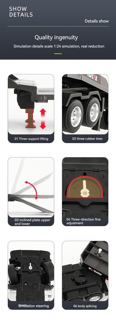 Simuler transport av last eller maskiner med denne 1:18 lastebilen og planhengeren fra Huina. Flatsengen er montert separat til hovedkabinen.Læs mere om produktet
