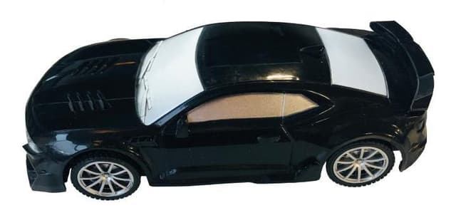 En lille radiostyret sportsbil i skala 1:22. Bilen har tovejskontrol og kan styres fremad og bagud. Bilen har såkaldt """"panservognsstyring"""", hvilket betyder, at hjulene er statiske og ikke kan dreje.