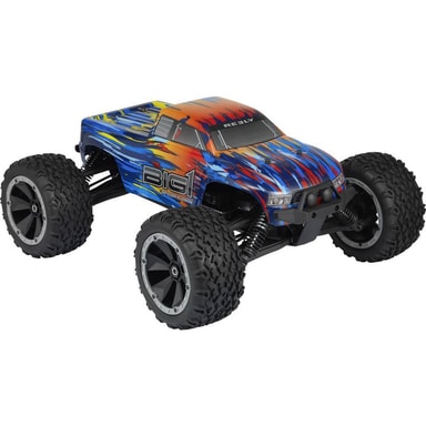 Her er navnet program! Den mægtige monstertruck BIG1 bliver drevet via et stærkt 4S Brushless-drev over racerbanen. For at tage enhver kurve perfekt har BIG1 to vandtætte 9 kg styreservoer. Takket være ekstrem frihøjde og High Grip offrodæk er monstertruck perfekt egnet til hårdt terræn. Forstærkede chassis-komponenter sørger for den nødvendige holdbarhed. OBS! Denne produktbeskrivelse er endnu ikke blevet oversat til dansk af vores oversættere. Derfor er teksten maskineoversat fra den tyske originaltekst.