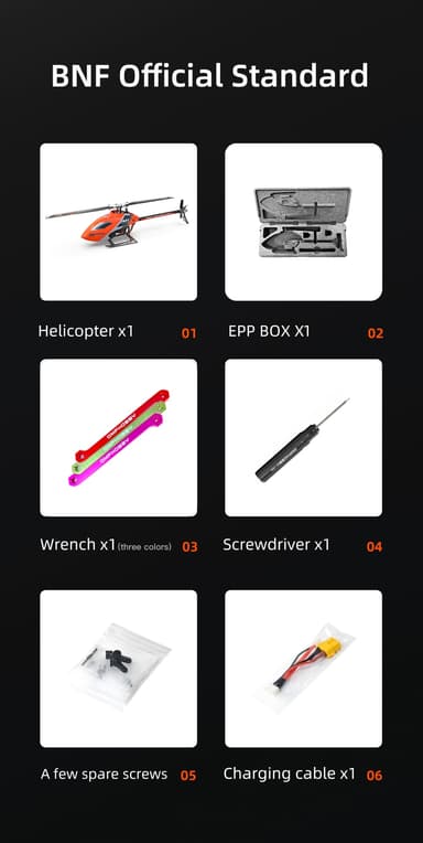 OMP Hobby M1 EVO Helikopter. Dette er BNF-utgaven med innebygget SFHSS-mottaker og det følger med ett drivbatteri.Læs mere om produktet
