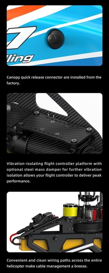 OMP Hobby M7 helikopter er en skikkelig hissig 3D-maskin i 700 size! M7 har muligheten til å bruke opp til 715mm blader og har en flyvekt på ca.Læs mere om produktet