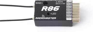 Radiomaster R86 V2 kommer med D16 protokoll. Mottaker leveres med dual antenne og veier kun 4,8gram. Brukes i det meste av radiostyrte fly og annet radiostyrt med FrSky D16v1 protokoll (MERK: kun kompatibel med D16v1 protokoll fra multimoduler, ikke D16 i f.eks FrSky radioer). Spesifikasjoner