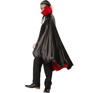 Det tofarvede Unisex-børnekostume, Vampyrkappe Flagermus, er ærmeløs, takket og har en krage til at binde. Materiale: 100 % polyester.Grev Dracula vil være stolt af en sådan arvtager! Stilfuld i en silkeagtigt glimtende kappe i flagermuseform.Læs mere om produktet