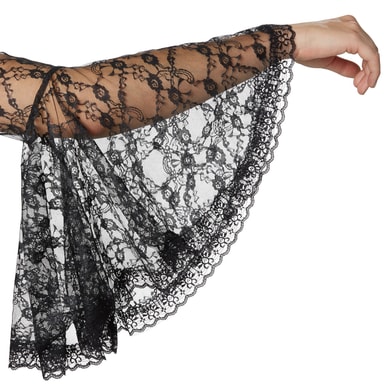 Kvindekostumet, skræmmende danserinde, er en taljeret kort kjole, som er skåret længere bagpå end foran. Oven for skelet-printet i midten er der på to små stykker fløjl påklæbet et lille dødningehoved. Dette kostume er derfor velegnet til Halloween.Læs mere om produktet