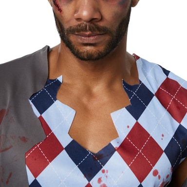 Herrekostumet, skræmmende skoledreng, passer perfekt til Halloween og består af et par lange bukser med elastik, huller og frynser for enderne. Den ærmeløse overdel er med slipover-look og har frynser forneden og på kragen.Læs mere om produktet