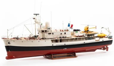 Billing Boats her med et 1/45-skala trebyggesett av Calypso, en minesveiper, redningsbåt og observasjonsbåt.Læs mere om produktet