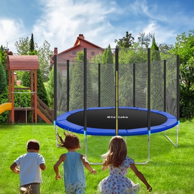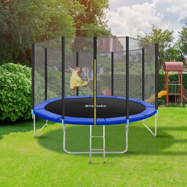 • tectake Trampolin med sikkerhedsnet 396 x 396 x 260 cm Sort/Blå