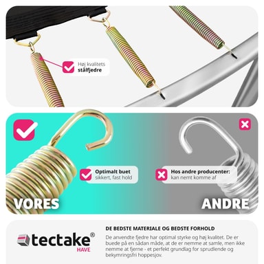 En trampolin fra tectake gør det sjovt at være i bevægelse og giver timevis af underholdning for både børn og voksne. Den kraftige opspænding og de stærke stålfjedre sikrer en optimal affjedring, hvilket giver en fantastisk hoppeoplevelse og maksimal trampolin-glæde.