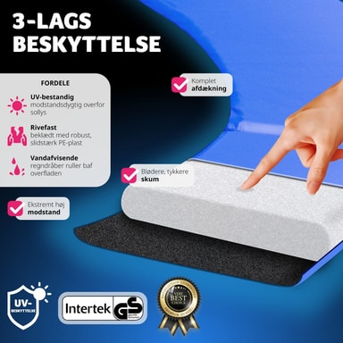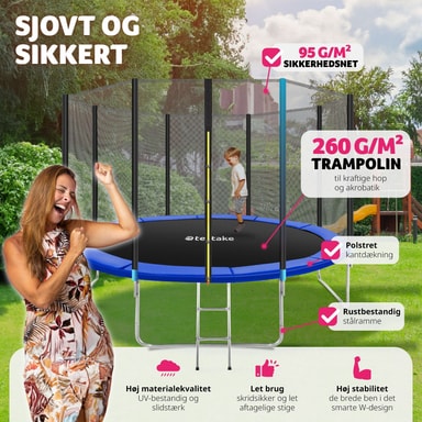 Den slidstærke springdug, det robuste og stabile stel samt den tykke polstring af kanten over stålfjedrene sørger for den højeste sikkerhed under brug.