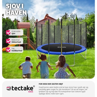 Opstillingen af trampolinen er hurtig og ukompliceret, så du hurtigt kan komme i gang med at hoppe. En trampolin fra tectake kombinerer sjov, motion og sikkerhed i ét og er den perfekte tilføjelse til enhver have.