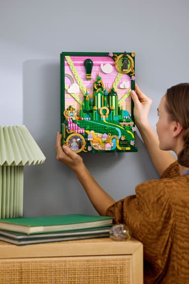 • Emerald City-vægkunst som fantasifuld indretningsgave med 6 minifigurer og skjulte detaljer