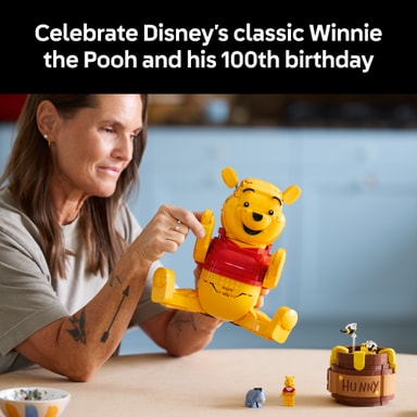 Glæd filmfans med en detaljeret udstillingsmodel af Disneys Peter Plys, en klodsbygget honningkrukke, 2 LEGO ǀ Disney figurer og meget mere.Læs mere om produktet