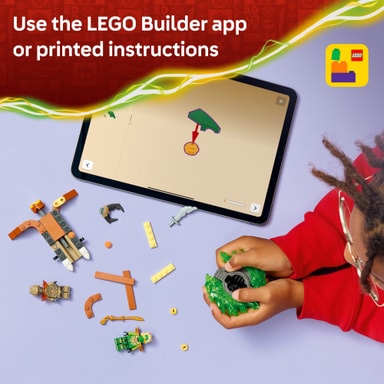 LEGO NINJAGO sortimentet af byggesæt og eventyrlegetøj til børn omfatter detaljerige mech-robotter, drager og templer, så fans kan udspille actionfyldte scener med ninja-rolleleg. Børn kan bygge hvert legesæt med selvtillid ved hjælp af LEGO Builder appen, hvor de kan zoome, dreje i 3D og følge deres fremskridt med letforståelig digital vejledning. Byg-selv-sættet indeholder 52 elementer.
