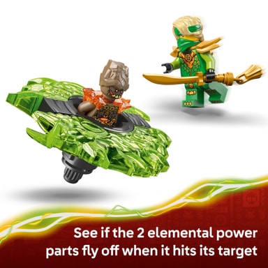 Drenge og piger fra 6 år vil elske at bygge LEGO® NINJAGO® kamplegetøjet Lloyd mod jordmonster-spinner (71850) og genskabe scener fra sæson 4 af tv-serien NINJAGO: Dragerne vågner. Når modellen er bygget, kan børn trykke på affyringsknappen for at sætte spinner-legetøjet i gang og se, om dens 2 elementkraft-dele flyver af, når den rammer sit mål.
