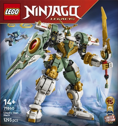 Det imponerende mech-legetøj er fyldt med detaljer og funktioner, så teenagedrenge, teenagepiger og nostalgiske ninjafans fra 14 år kan fejre 15-års jubilæet for LEGO® NINJAGO® tv-serien. LEGO NINJAGO actionfigursættet Lloyds kæmperobot – 15-års jubilæum (71860) er en opgraderet udgave af den originale fanfavorit Lloyds kæmperobot (70676).