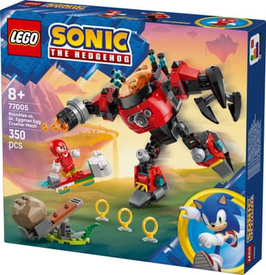 Glæd fans af LEGO Sonic the Hedgehog med legetøjssættet Knuckles mod dr. Eggmans Egg Crusher-mech med en bevægelig kamprobot, katapult og 2 figurer.Læs mere om produktet