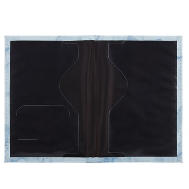 Imiteret lædermaterialet har en størrelse på 14 x 10,2 x 0,7 cm og fås i farverne sort, hvid-grå, grå, blå og pink.