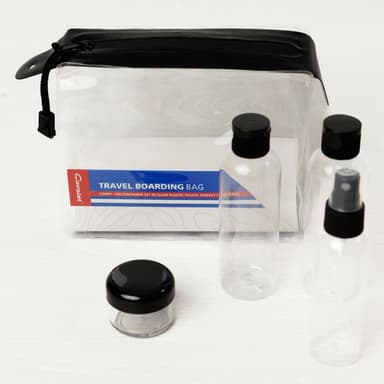 Cavalet reseflaskor för att ta med vätska i kabinen. Flaskorna ligger i en plastnecessär med dragkedja.
