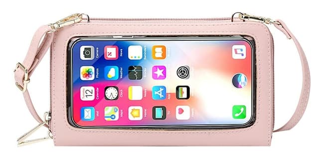 Den lilla crossbody-väskan är gjord av PU-läder. Den har utmärkt funktion, tydlig pekskärm gör dig bekväm att styra din mobiltelefon, utan att behöva ta ut den. Särskild RFID-skyddsfunktion kan blockera RFID-signaler och skydda värdefull privat information som lagras på RFID-chips från obehöriga skanningar.
