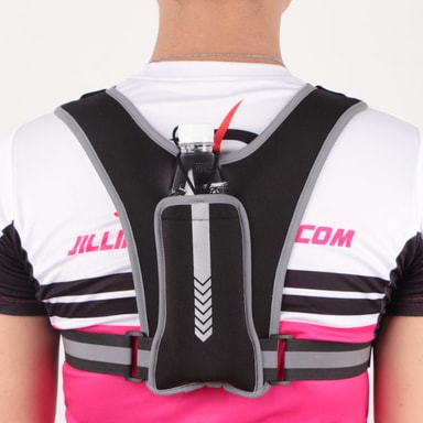 Øget Synlighed: Denne løberygsæk har reflekterende striber strategisk placeret for maksimal synlighed under dårlige lysforhold, hvilket sikrer din sikkerhed under løbeture om natten eller tidlig morgen.