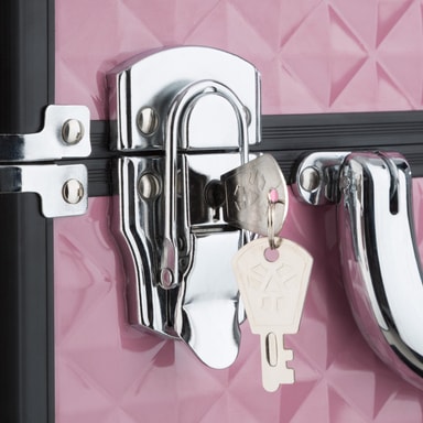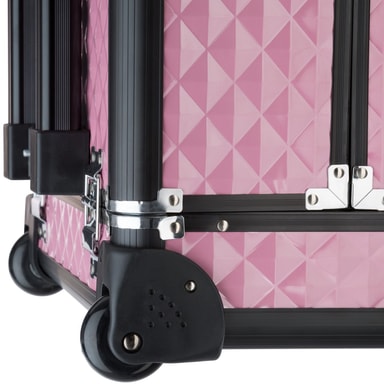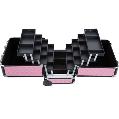 Vores beautytrolley er udstyretmed 8 store udtræksbakker og tilbyder masser af lagerplads til en bred vifteaf redskaber. Med de forskellige inddelinger er dine ting altid overskueligtarrangeret. Vores makeup trolley kan låses. De indvendige overflader er beklædtmed sort filt. Et udtrækkeligt teleskophåndtag sikrer optimal håndtering.Optimal anvendelse finder vores makeup trolley ved så forskellige professionerog hobbyer som f. eks.: Kosmetikkuffert, make-up-artist-kuffert,negle-design-kuffert, frisør- og skønhedssalonkuffert, skrædderkuffert.