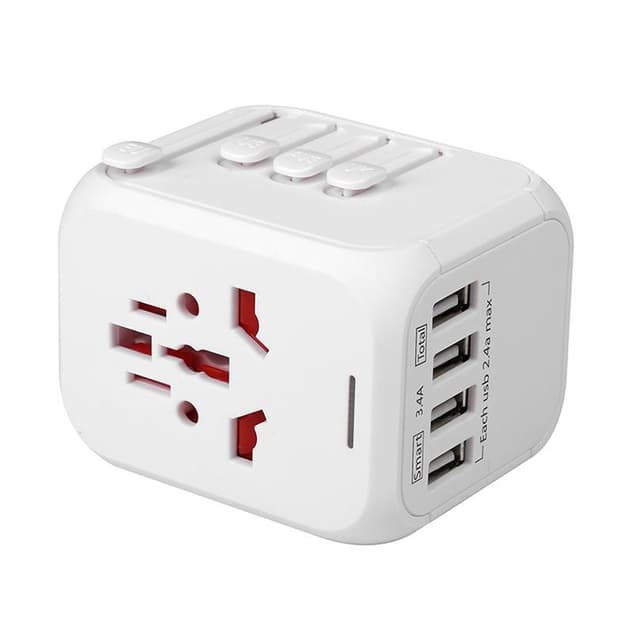 4 USB-porte til samtidig opladning: Adapteren har også en interface til 4 USB-porte. Oplad din smartphone på samme tid som din bærbare computer, oplad din tablet på samme tid som din barbermaskine og så videre! Med denne multifunktionelle adapter behøver du ikke tage en anden oplader med dig, når du rejser.