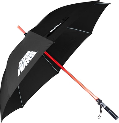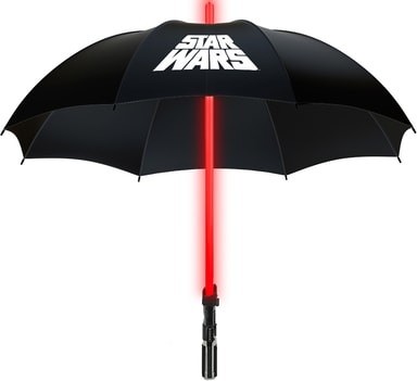 Denne Grupo Eriks Star Wars-paraply har et håndtag, der er designet til at ligne et lyssværdshæfte, og en glødende rød stang strækker sig opad, hvilket efterligner Darth Vaders lyssværd og danner paraplys centrale stang.Læs mere om produktet