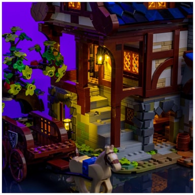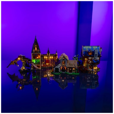 Light My Bricks™ Fantasy lyssættet forvandler dine LEGO® fantasy-temasæt med varmt hvidt lys, puls- og flimmereffekter, der tilføjer magisk stemning og dybde til Viking Village, Medieval Town Square og meget mere.Læs mere om produktet