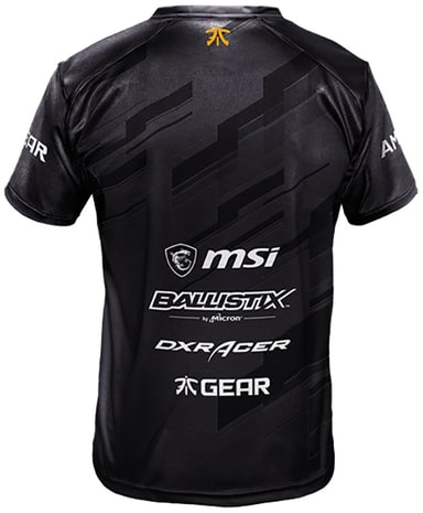 Sort 2018 Fnatic Pro trøje med reflekterende Fnatic print på brystet. Takket være trøjens dry fit kvalitet er den ideel til e-sportsturneringer. 100 procent polyester, størrelse S, svarer til europæisk størrelse 48.