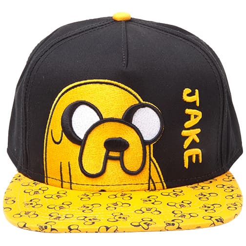 Sort og gul snapback cap med Jake fra Adventure Time på fronten. Lavet i 100 procent bomuld. One-size.Læs mere om produktet