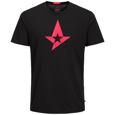 Sort og rød T-shirt med Astralis logo på fronten. 100 procent polyester. Størrelse L – hvilket svarer til en europæisk størrelse 52.Læs mere om produktet