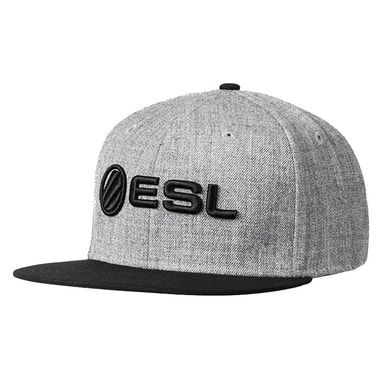 ESL snapback cap med broderet logo på fronten, ESL mærkat på bagsiden, justerbar lukkemekanisme for perfekt pasform og indvendigt bånd i klassiske ESL farvetone.