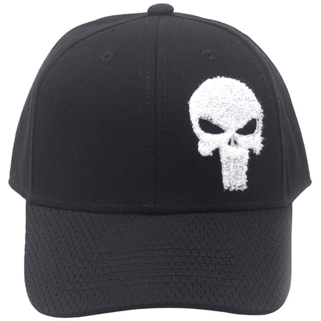 Sort cap med Marvels Punishers hvide kranie-logo på fronten. Lavet i 100 procent bomuld. One-size.