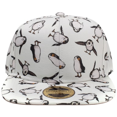 Hvid snapback cap med sødt Porg-design. 100 % bomuld, one-size.Læs mere om produktet