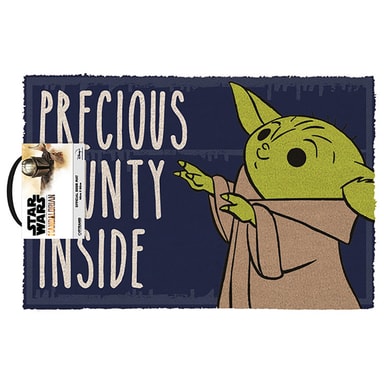 Play The Mandalorian dørmåtten er en fantastisk måde at invitere gæster ind i dit sjove nørdede hjem. Den er dekoreret med udtrykket ''Precious Bounty Inside'' og måler 40 x 60 x 1,5 cm.