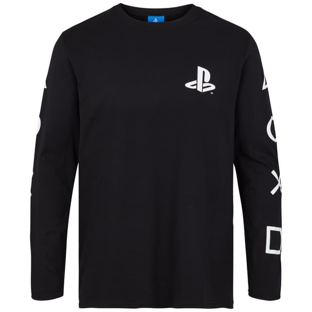 Sort langærmet trøje med PlayStation logo på brystet og med ikoniske trekants-, cirkel-, kryds- og firkantssymboler på begge ærmer. 100 procent bomuld. Størrelse L, svarende til europæisk størrelse 52.Læs mere om produktet