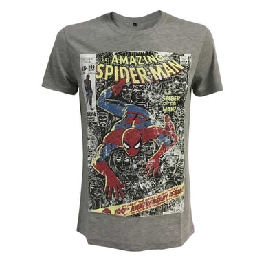 Grå t-shirt med Marvel - The Amazing Spiderman-tema. 100 procent bomuld, størrelse XXL, svarende til europæisk størrelse 56.Læs mere om produktet