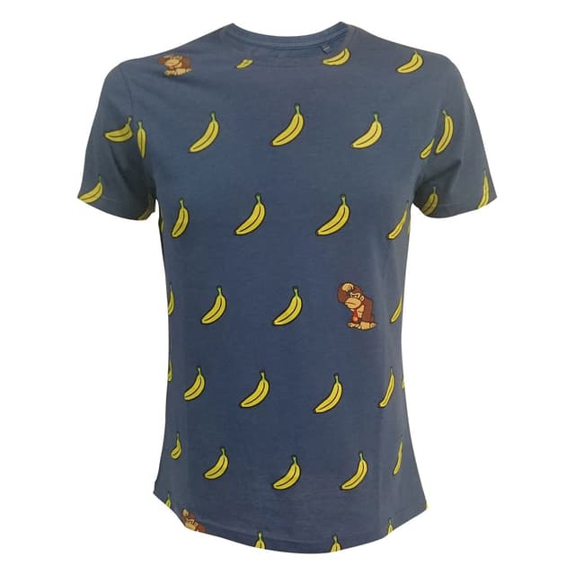 Blå t-shirt med Nintendo - Donkey Kong Bananas-tema. 35 % bomuld, 65 % polyester, størrelse M, svarende til europæisk størrelse 50.