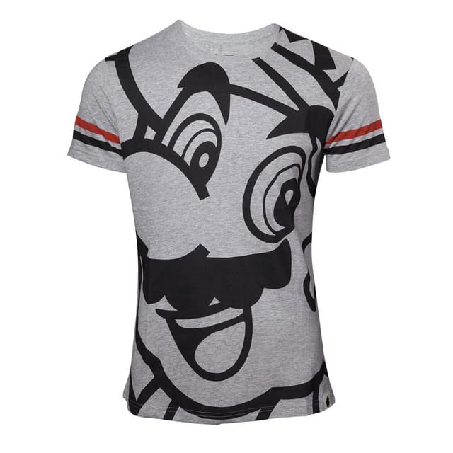 Grå t-shirt med Nintendo - Mario Face -tema. 100 procent bomuld, størrelse M, svarende til europæisk størrelse 50.Læs mere om produktet