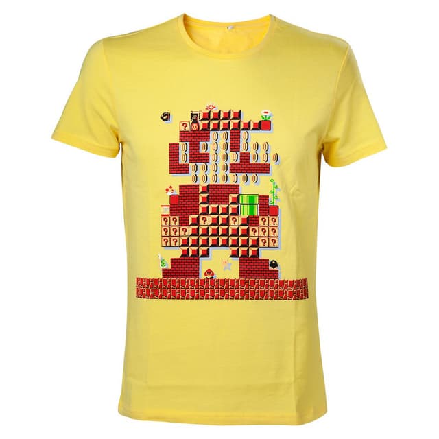 Gul t-shirt med Nintendo - Mario Maker -tema. 100 procent bomuld, størrelse M, svarende til europæisk størrelse 50.Læs mere om produktet