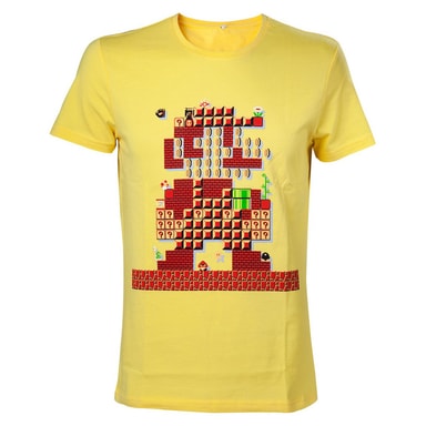 Gul t-shirt med Nintendo - Mario Maker -tema. 100 procent bomuld, størrelse M, svarende til europæisk størrelse 50.