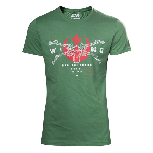 Grøn t-shirt med Star Wars - Red Squadron X-Wing -print. 100 procent bomuld, størrelse S, svarende til europæisk størrelse 48.Læs mere om produktet
